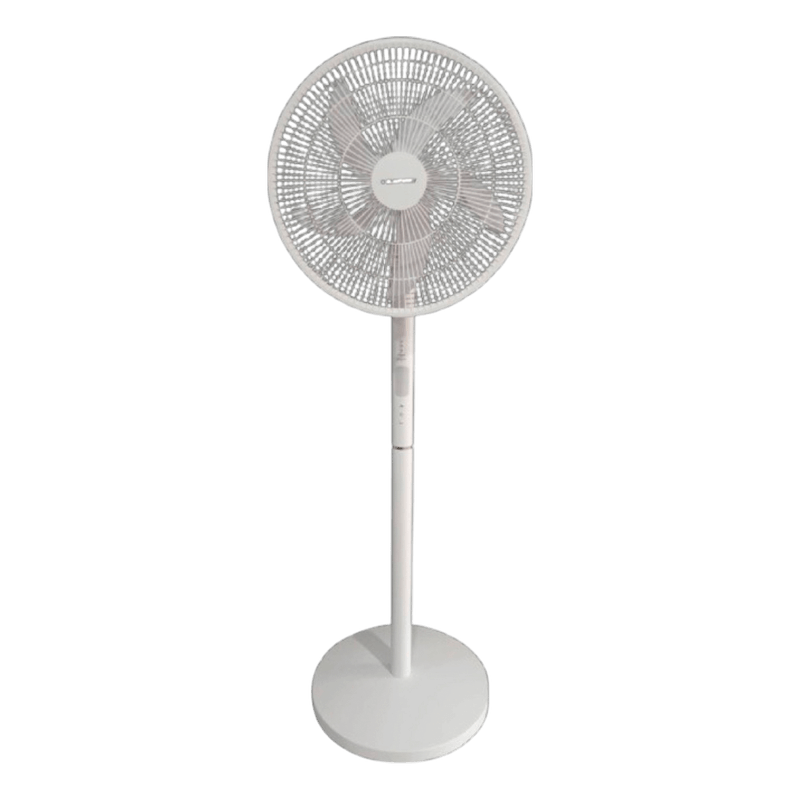 Caracteristicas •Altura 1: 74.6 cm •Altura 2: 102.1 cm •Altura 3: 129.5 cm * Color: Blanco *Batería: 2 piezas *6 V/4500 Mah *Batería recargable de plomo-ácido *Interruptor de velocidad del viento/temporizador *Función de luz nocturna 3 Velocidades