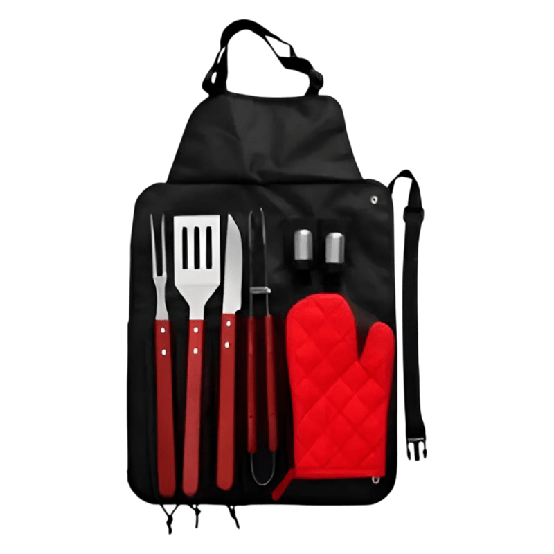 Set de BBQ Material: Acero Inoxidable + Delantal de tela de 600D Oxford Peso: 760g Tamaño: 62*43cm Cintura de delantal: 95cm Coello de delantal: 54cm