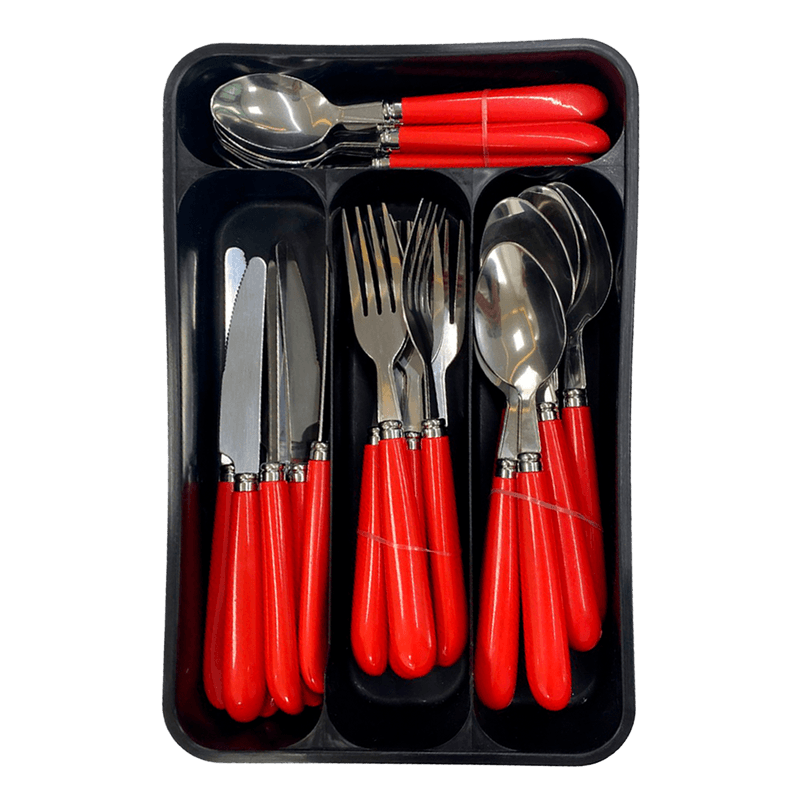 Material: acero inoxidable 420 + polipropileno. Cuchillo: L20.6CM, 27G horquilla: L19.8CM, 25G cuchara: L19.5CM, 30G Cucharadita: L15.2CM, 25G