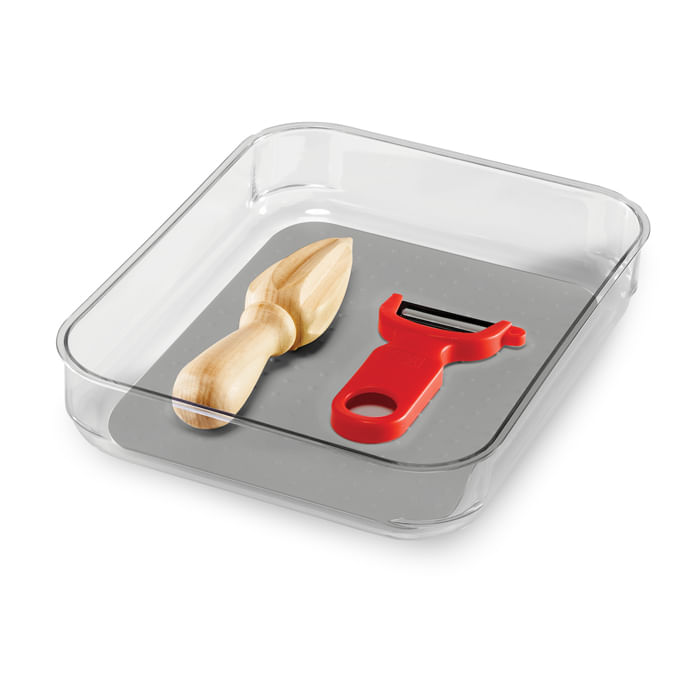 •El plástico transparente proporciona visibilidad. mientras que el forro de agarre suave y los pies de goma antideslizantes mantienen sus artículos en su lugar y el hogar organizado. Las esquinas redondeadas permiten una fácil limpieza.